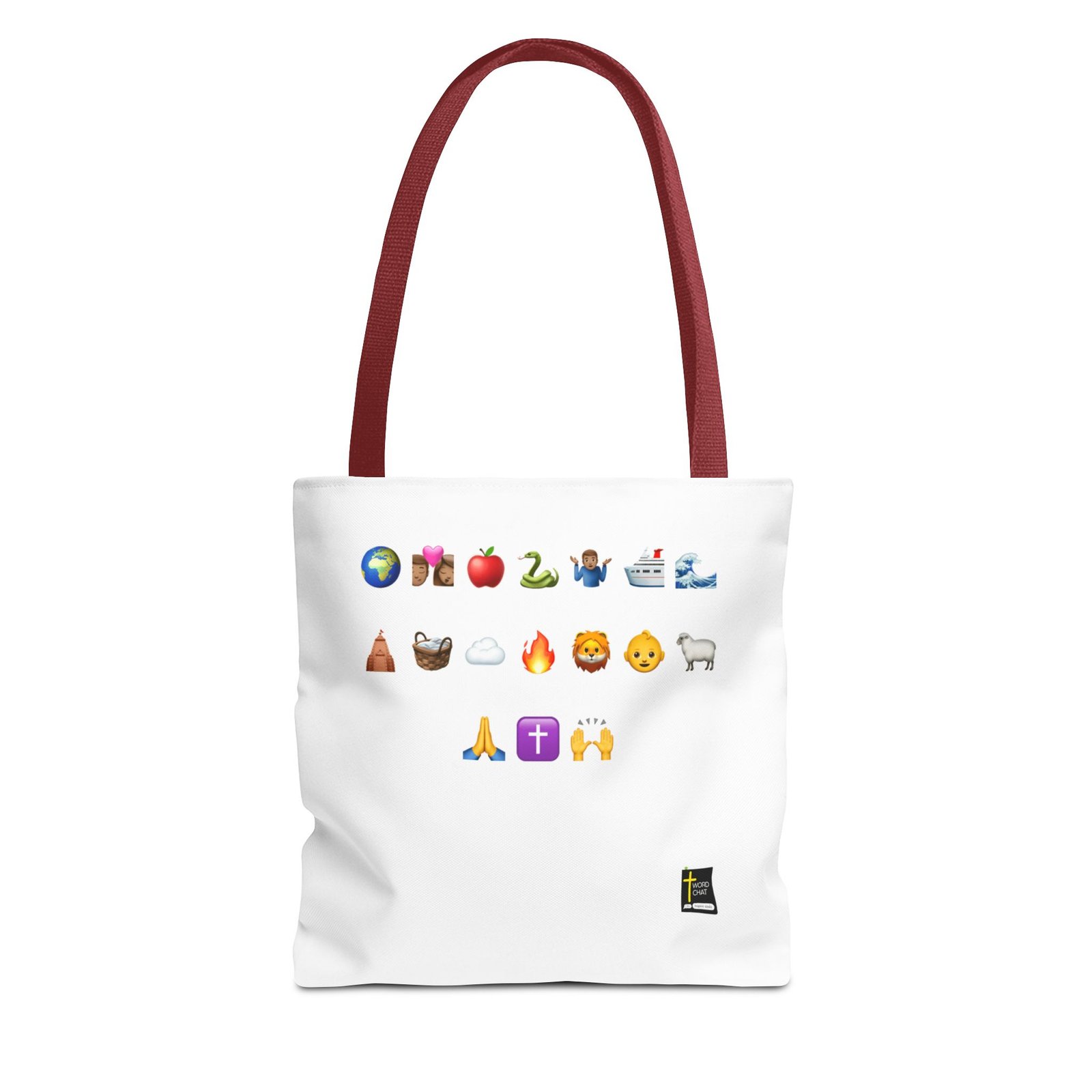 This 13″ x 13″ canvas tote adds both functionality and style. These custom-printed tote bags come with multiple handle color options to match your favorite WordChat image. Made with spun polyester, each bag features double-stitched seams, cotton webbing straps, and a nonwoven laminate lining for high-end durability. The all-over print is created using dye sublimation for vivid, long-lasting visuals.