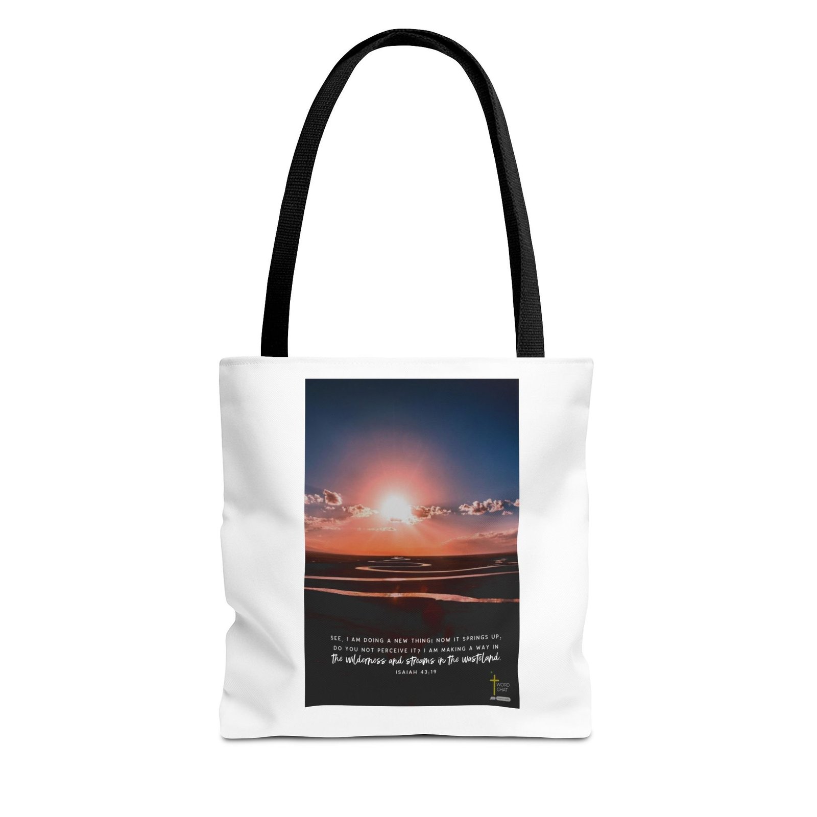13″x13″ canvas tote to add both functionality and style! These custom-printed tote bags come with multiple handle color options to match your favorite WordChat image. Made with spun polyester, these bags feature double-stitched seams, cotton webbing straps, and nonwoven laminate lining for high-end durability. Your all-over print is created with dye sublimation for high-end visuals.