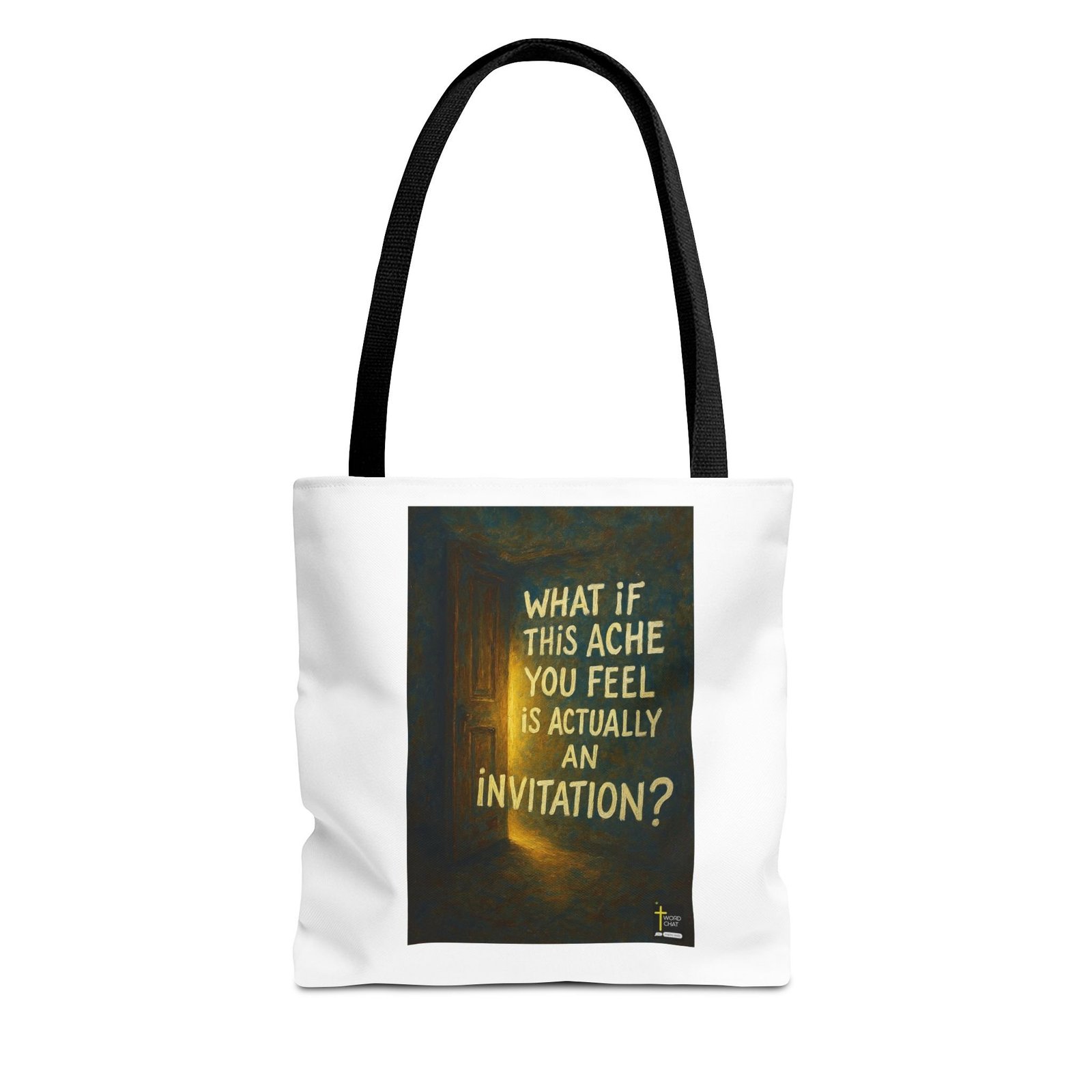 This serene landscape image features a biblical quote from Matthew 11:28 overlaid on a breathtaking mountain vista. The background showcases a panoramic view of rolling mountain ranges with lush green forests and golden-hued slopes in the foreground. A rocky cliff face dominates the left side of the image, with steep, rugged terrain contrasting against the softer landscape beyond. The sky is a gradient of deep blue, creating a peaceful and inspirational backdrop for the scripture text. The image is designed in a motivational poster style, with the white text placed centrally against a semi-transparent overlay that allows the scenic landscape to remain visible.