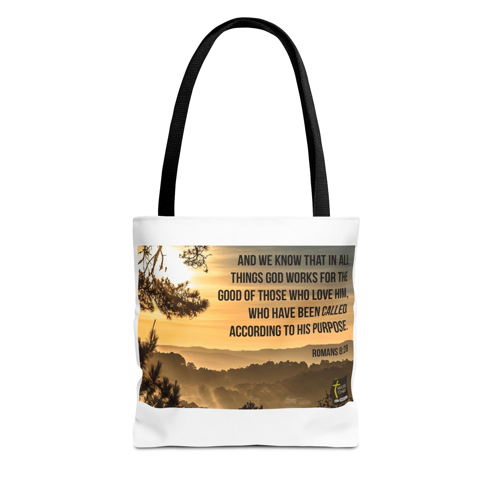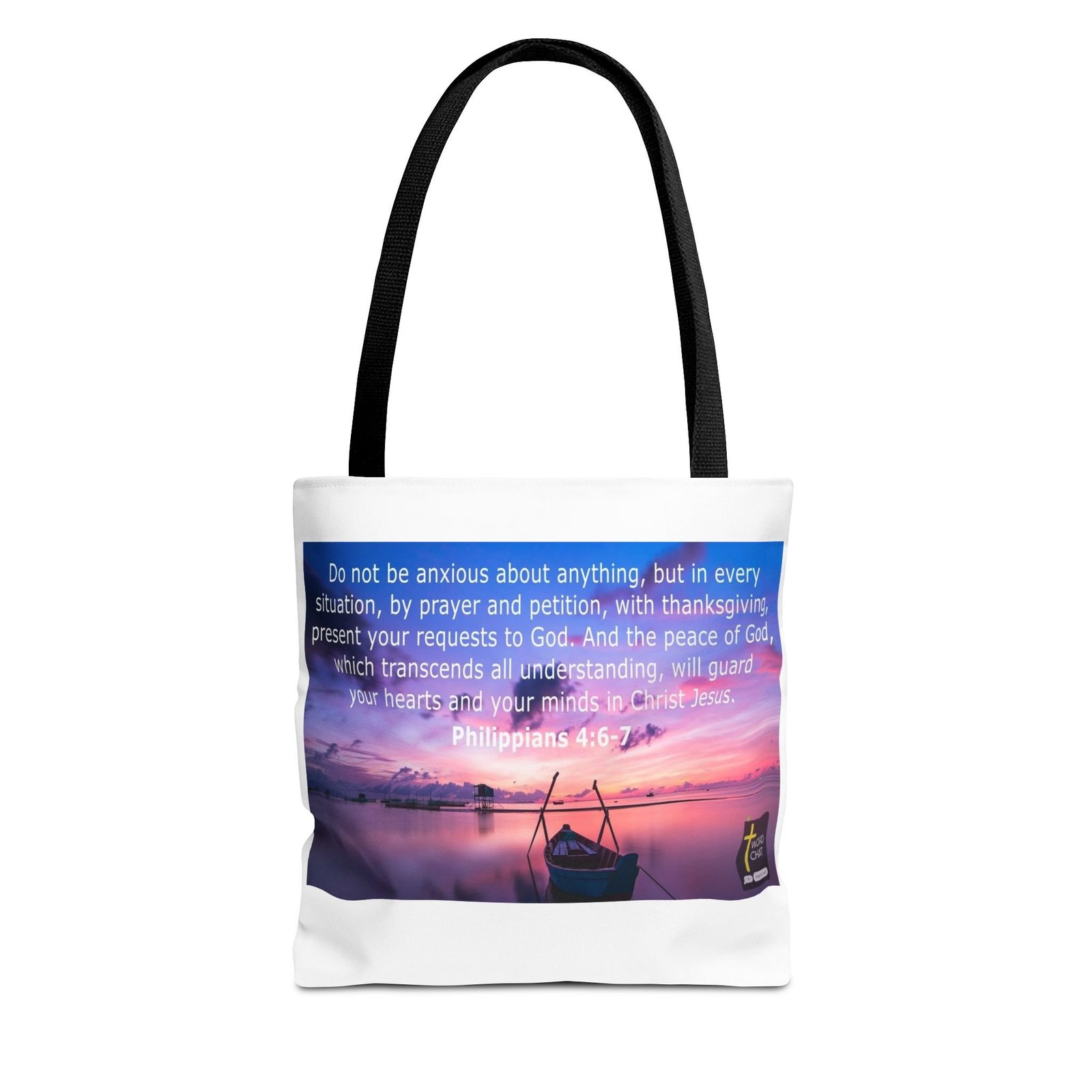 13″x13″ canvas tote to add both functionality and style! These custom-printed tote bags come with multiple handle color options to match your favorite WordChat image. Made with spun polyester, these bags feature double-stitched seams, cotton webbing straps, and nonwoven laminate lining for high-end durability. Your all-over print is created with dye sublimation for high-end visuals.