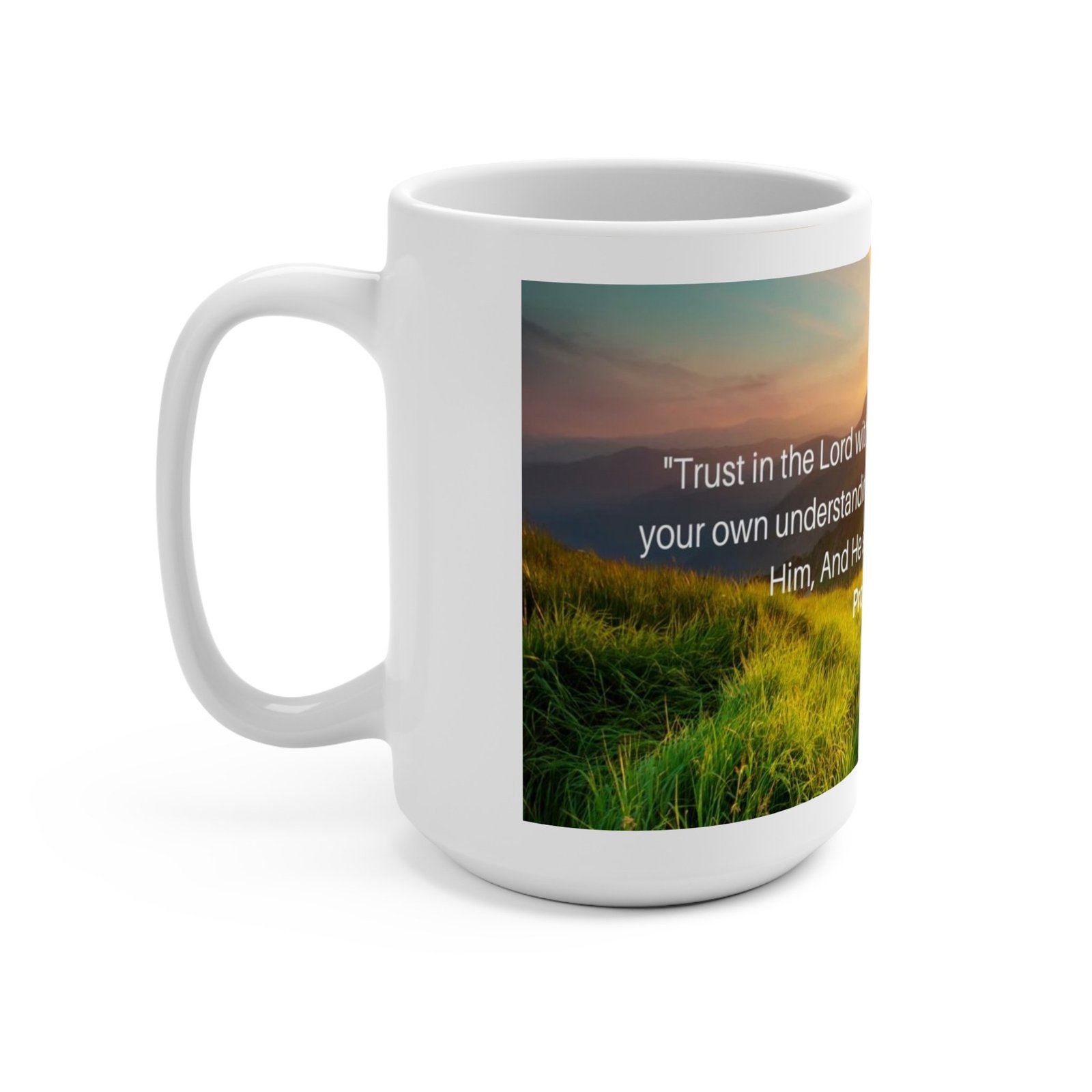 This serene landscape image features a beautiful sunset or sunrise over a mountainous terrain, with lush green grass in the foreground and golden sunlight illuminating the scene. Overlaid on the image is a biblical quote from Proverbs 3:5-6, which encourages trusting in the Lord and acknowledging Him in all ways. The text is displayed in a clear, white font that stands out against the warm, gradient sky and verdant grasslands. The mountains are silhouetted in the background, creating a sense of depth and tranquility. A small “Word Chat” logo is positioned in the bottom right corner of the image, adding a subtle branding element to the inspirational scene.