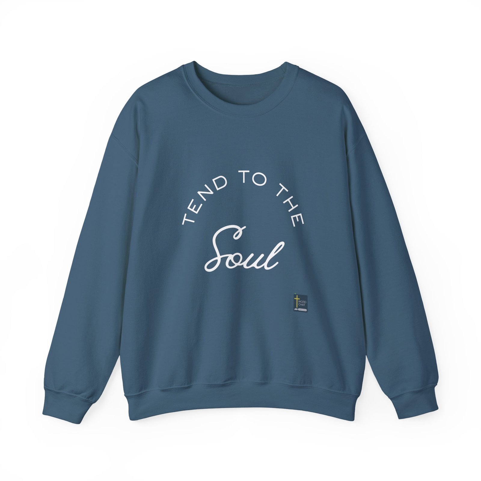 This neon-style image displays the phrase “Tend to the Soul” rendered in a modern, glowing aesthetic. The text is arranged in a circular composition, with “Tend To The” positioned around the upper portion and “Soul” prominently featured in cursive script in the lower center. The typography features a sleek, contemporary design that evokes vintage neon signage with its tubular lettering style. The WordChat logo and ‘inspire souls’ tagline sit in the bottom right corner, showing a place find soul stirring messages to share, as well as join a Christian social networking platform.